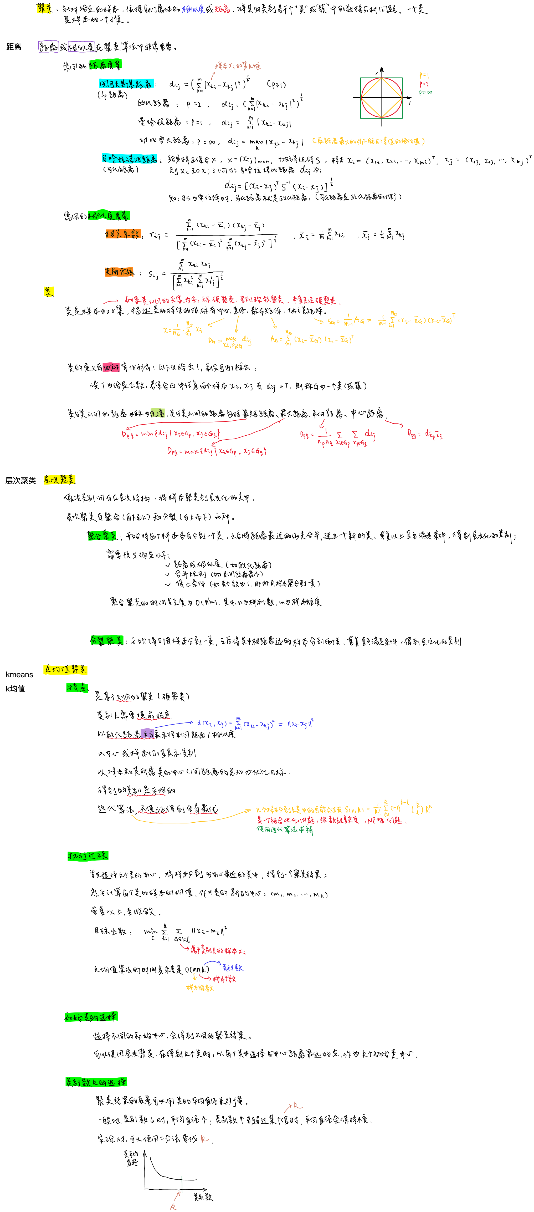 - 平均距离:$D_{av}=\frac{1}{n_p n_q}\sum_{x_i\in C_p}\sum_{x_j\in C_q}d_{ij}$