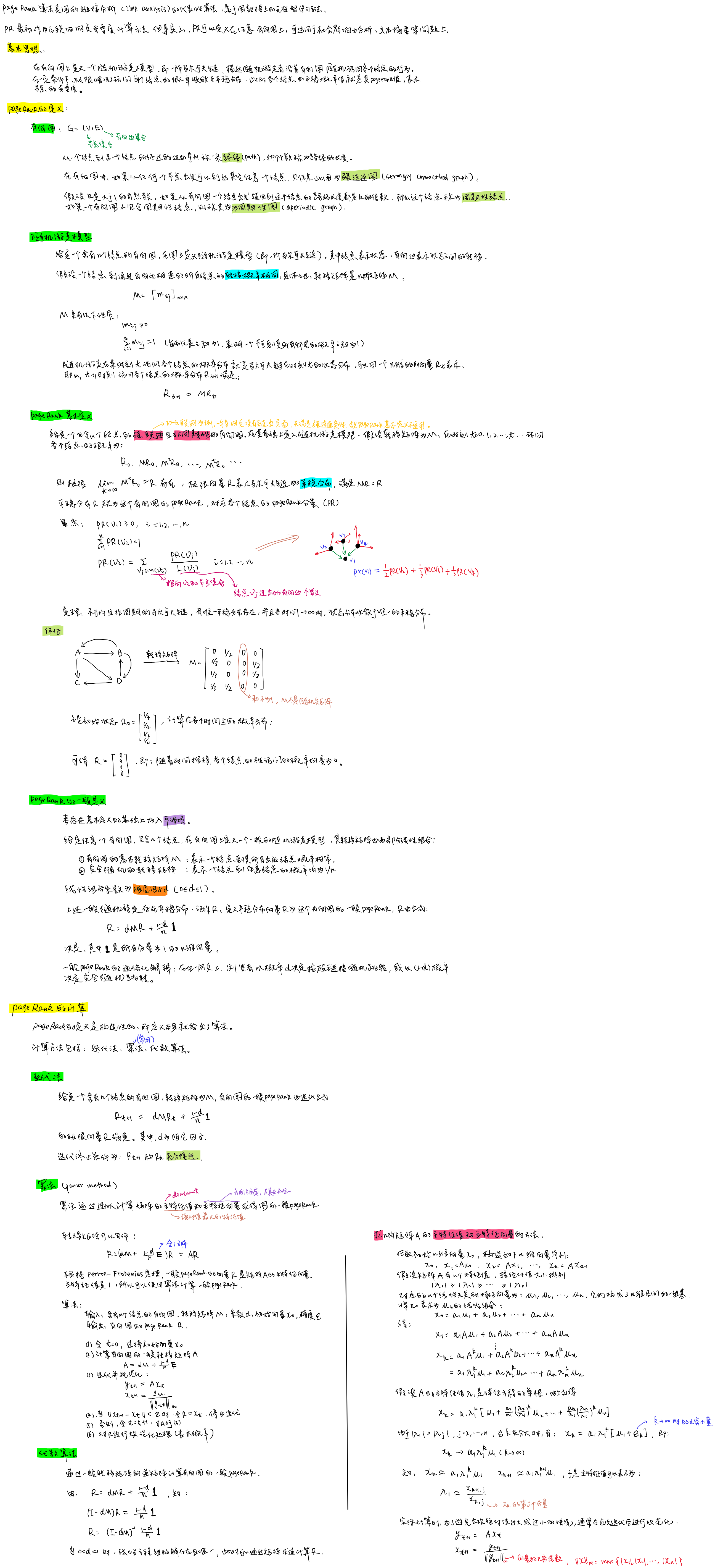 - $\mathbf{r}$:PageRank向量,$\mathbf{r} = [r_1, r_2, ..., r_n]^T$